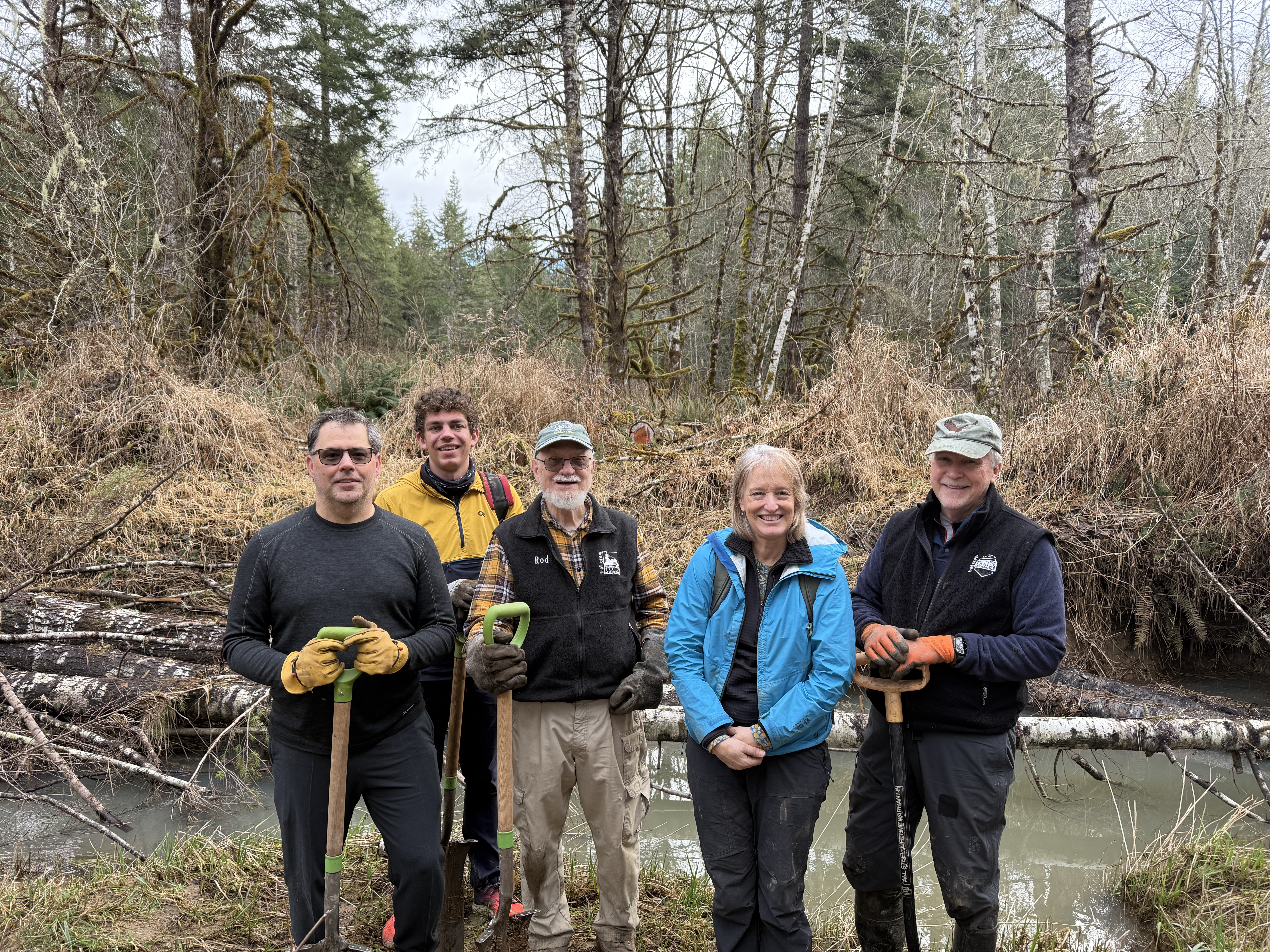 We kicked off the 2026 volunteer season with a restoration planting trip. Volunteers planted 200 trees at two sites along Salmon Creek, a tributary of the Cowlitz River. The western redcedar, Douglas fir, and big leaf maple they planted along the stream bank will increase habitat diversity and provide shade, which will help cool water temperatures. Since November, volunteers and Northwest Youth Corps members have planted over 1,000 trees at these sites!