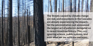 In the Cascades, our snowpacks are at record lows. Droughts, mega fires, and atmospheric rivers have scarred our landscapes and harmed communities. In 2024 alone, weather and climate-change-related disasters cost the United States $27 billion. As more greenhouse gases accumulate in the atmosphere, the impacts and costs of climate change will continue to rise.